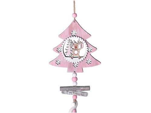 Závěs dřevo 120x120mm Sob uvnitř stromku, růžová, bílá