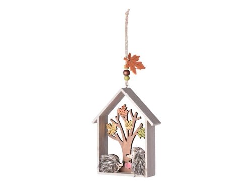 Dřevěná závěsná dekorace o rozměrech 140×175 mm s motivem stromu a roztomilých ježků ukrytých v domečku vnese do interiéru hřejivou a útulnou atmosféru. Přírodní dřevo je doplněno barevnými detaily, které dodávají dekoraci živost a jemný podzimní nádech. Díky praktickému závěsu ji snadno umístíte na dveře, okno či stěnu. Nabízena je v mixu barevných variant, takže si můžete vybrat tu, která nejlépe ladí s vaším stylem. Skvělá volba pro sezónní výzdobu nebo jako milá dekorace do každého domova. Zboží je dodáváno v mixu. Doručované zboží je vybíráno náhodně a nelze vybrat konkrétní provedení.