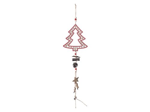 Závěs dřevo 155x170mm strom, červená s glitrem