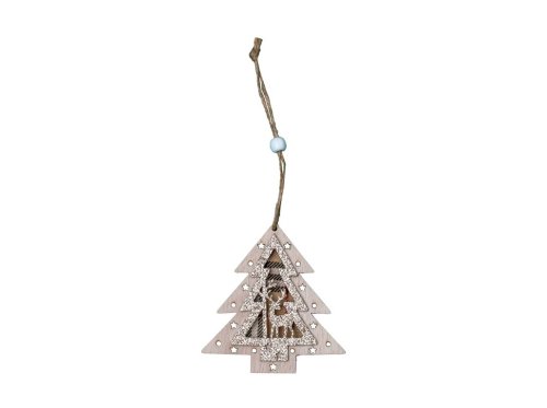 Závěs dřevo 2 ks 95x100mm stromek, přírodní s glitrem, zlatá