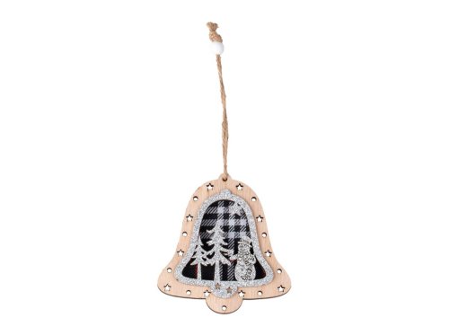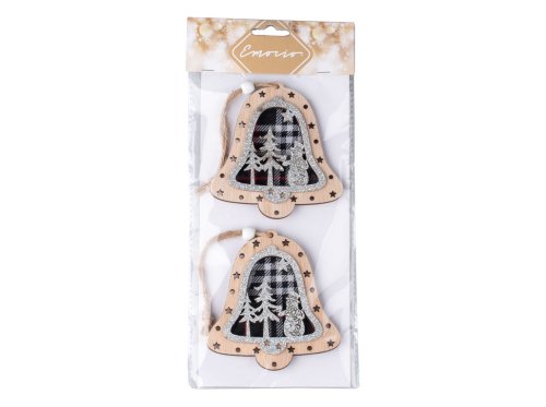 Závěs dřevo 2 ks 95X100mm zvonek, přírodní s glitrem, stříbrná