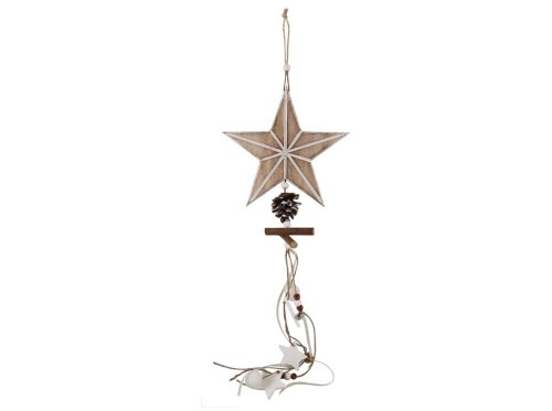 Závěs dřevo 200x200mm hvězda, přírodní , bílá