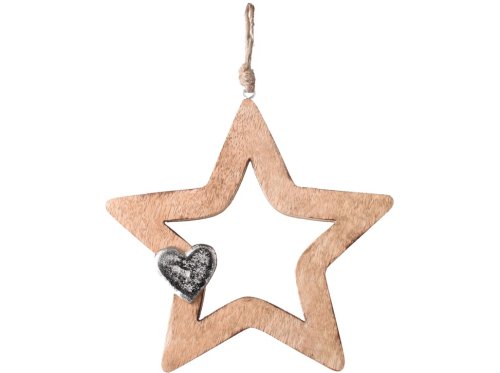 Závěs dřevo 203x35x203mm vločka se srdíčkem, přírodní
