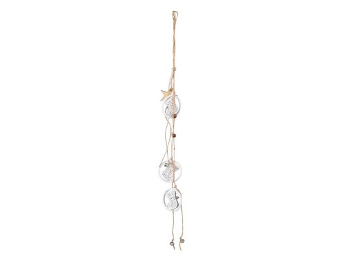 Závěs dřevo 60x60 mm, bota uvnitř kouličky s rolničkou, bílá
