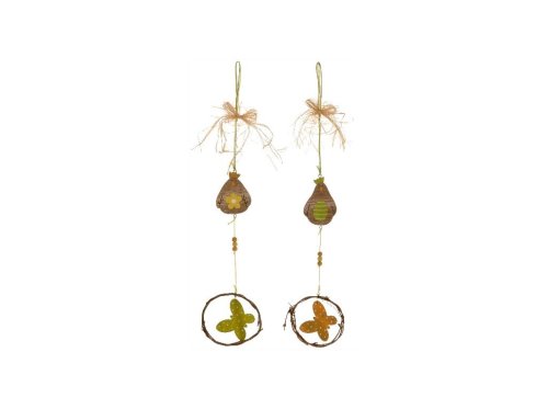 Dekorační závěs z přírodního dřeva o průměru 90 mm je ideálním doplňkem pro zútulnění domova. Motivy slepice a motýla působí hravě a přinášejí svěží, jarní atmosféru do interiéru i na terasu či balkon. Díky lehké konstrukci se závěs snadno umístí na okno, dveře nebo stěnu. Přírodní materiál dodává dekoraci rustikální a příjemný vzhled. Mix variant umožňuje vybrat motiv, který nejlépe ladí s ostatní výzdobou.