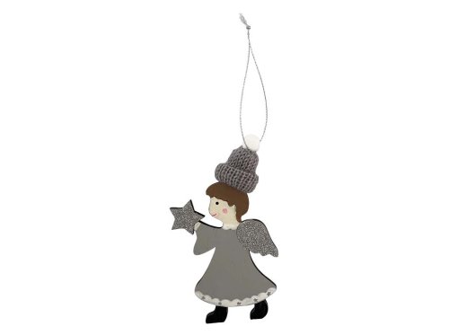 Závěs dřevo 90x150mm Anděl, přírodní s gliterm, šedá