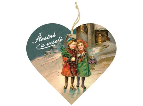 Závěs dřevo srdce 120 mm - Děti u kostela