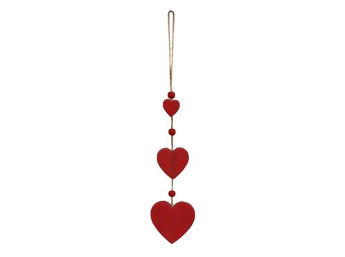 Dřevěný závěs ve tvaru červeného srdíčka, ideální pro dekorace. Jeho rozměry jsou 70 x 70 mm.