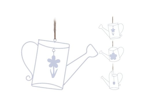 Kovový závěs ve tvaru konvičky o výšce 200 mm je půvabnou dekorací, která vnese do prostoru jemnost a venkovský šarm. Bílá barva působí čistě a univerzálně, takže se snadno kombinuje s dalšími doplňky. Díky kvalitní kovové konstrukci je závěs odolný a vhodný jak do interiéru, tak i na kryté venkovní prostory, jako jsou pergoly nebo verandy. Dekor je doplněn o drobné detaily v mixu variant, které dodávají každému kusu originální vzhled. Perfektní volba pro jarní období i celoroční výzdobu. Zboží je dodáváno v mixu. Doručované zboží je vybíráno náhodně a nelze vybrat konkrétní provedení.