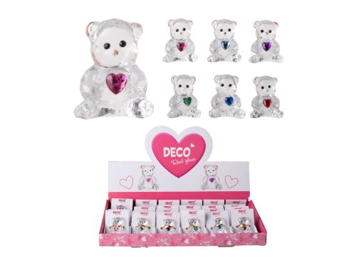 Skleněný závěs ve tvaru medvídka se srdíčkem, mix barev. Krásná dekorace do bytu nebo na stromeček. Jeho rozměry jsou 100 mm. Zboží je dodáváno v mixu. Doručované zboží je vybíráno náhodně a nelze vybrat konkrétní provedení.