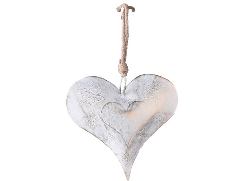 Kovové srdíčko v bílé barvě na provázku je decentní závěsná dekorace vhodná na dveře, okno, větev nebo věnec. Nadčasový design a neutrální barva z něj dělají univerzální doplněk pro každé roční období i příležitost.