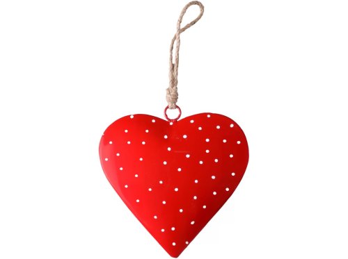 Stylové kovové srdce v červené barvě o průměru 15 cm je ideální k zavěšení na stěnu, dveře nebo jako doplněk k dárkovému balení. Hodí se zejména pro romantické či sezónní výzdoby (např. Valentýn, Vánoce).