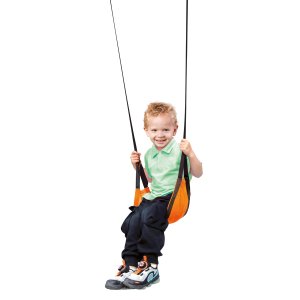 Dětská červená houpačka, vyrobená z nylonových a polyesterových vláken. Houpačka je prodyšná neklouzavá a odolná. Je skladná a snadno se přenáší. Kovová spona umožňuje přizpůsobení délky lana podle velikosti dítěte.