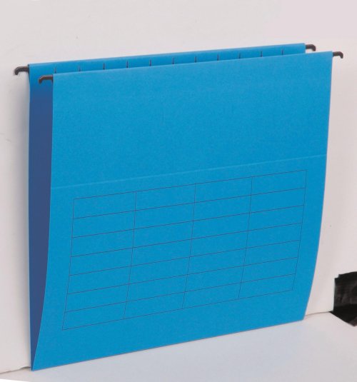 Standardní závěsné papírové desky s posuvným plastovým vyměnitelným rozlišovačem V-dno Dlouhá životnost – desky jsou vyrobeny ze 100% recyklovaného kartonu 220 g/m2 Plastový rozlišovač s vyměnitelným …