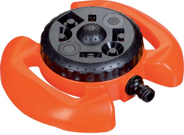 Multifunkční trávníkový zavlažovač s velkým podstavcem a nastavitelnými kropícími tryskami pro kropení trávníku, záhonů, keřů atd. Vhodné pro malé a střední plochy. Nabízí 8 - funkcí možného zavlažování. Maximální průměr zavlažovací plochy 10m.