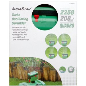 zavlažovač turbo oscilační lze nastavit požadovanou výseč zavlažované plochy max. zavlažovaná plocha 208 m vyrobeno z kvalitního plastu stabilní základna proti překlopení koncovka univerzální adaptér …