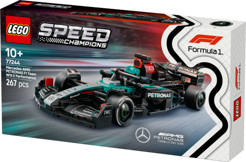 Vůz Mercedes-AMG PETRONAS F1® Team pro děti – Stavebnice LEGO® Speed Champions týmu Mercedes-AMG PETRONAS F1 pro kluky a holky od 10 let se skvěle hodí na stavění, vystavování i závodění 1 minifigurka řidiče – Tato stavebnice vozidla obsahuje minifigurku řidiče v outfitu týmu Mercedes-AMG PETRONAS F1® s okřídlenou helmou, kterou děti usadí do kokpitu a vydají se s ní na akční závody Propracovaný vůz Mercedes-AMG PETRONAS F1® Team – Model závodního vozu F1 se pyšní designovými detaily inspirovanými skutečným vozem z roku 2024, včetně polepů sponzorů a širších zadních pneumatik s nápisem „Pirelli“ Zábava s F1® pro celou rodinu – Závoďte o šachovnicovou vlajku s celou rodinou s dalšími stavebnicemi z řady LEGO® F1 (prodávají se samostatně) Výstavní model vozu F1® – Děti si vychutnají hraní na závody s modelem vozu Mercedes-AMG PETRONAS F1 Team a pak si ho vystaví na polici nebo na nočním stolku Tip na dárek F1® – Tato prémiová stavebnice závodního auta F1 z kostek LEGO® nabízí zábavný stavitelský a herní zážitek a potěší děti od 10 let i dospělé sběratele modelů vozidel Závoďte s výstavními modely slavných aut – Se stavebnicemi LEGO® Speed Champions si děti a milovníci aut postaví repliky proslulých vozů Rozměry – Tato stavebnice se skládá z 267 dílků a model závodního auta Mercedes-AMG PETRONAS F1® Team měří přes 4 cm na výšku, 20 cm na délku a 8 cm na šířku