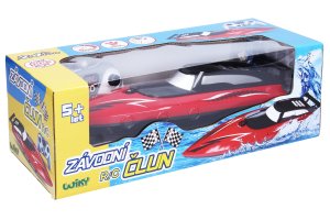 Závodní člun RC na dálkové ovládání - český obal. Rozměry 33x9,5x8 cm. Frekvence 2.4 GHz. 3.7V 500mAh bateriový pack do člunu součástí, 2xAA baterie do ovladače nejsou součástí. USB kabel součástí. Přepínač ON/OFF na ovladači.