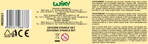Závodní stanice přenosná. Rozměry 55x20x25 cm. Světelné a zvukové efekty. 3xAG13 baterie součástí. Součástí 2 auta s volnými koly, značky, nálepky. Obrázkový návod na sestavení součástí. Nálepky nalepte dle obrázků na obalu.