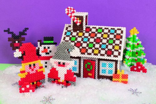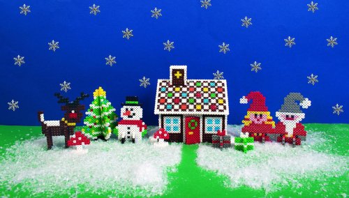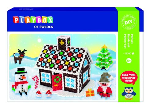 Zažehlovací sada s 5000 korálky, destičkou a předlohami. Pozvěte rodinu nebo přátele a vytvořte perníkovou chaloupku z korálků. Sada, která obsahuje vše potřebné k vytvoření útulného vánočního prostředí. Vánoční stromeček, vánoční dárky, sněhulák, elfové a Rudolf.