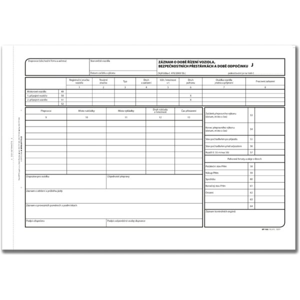 Tzv. puťovka Nepropisovací Číslovaný Formát: A4 na šířku Obsahuje 100 listů odtržitelných perforací Se zakládacím děrováním
