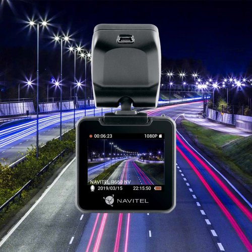 NAVITEL R650 Night Vision je záznamová kamera s moderním senzorem SONY 307 (noční vidění) a skleněnou optikou, která umožňuje nahrávání detailních snímků i při slabém osvětlení nebo v noci.