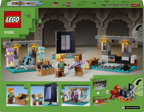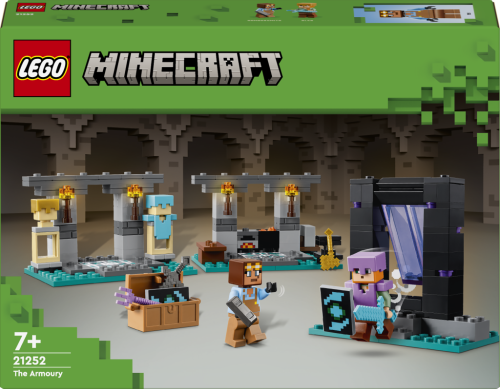 Milovníci hry Minecraft® od 7 let si oblíbí akční stavebnici Zbrojnice (21252). Představuje skvělý dárek pro děti a je ideálním úvodem do kreativního světa dobrodružných stavebnic LEGO® Minecraft. Součástí této stavebnice na motivy videohry Minecraft jsou 2 oblíbené postavy: akční hrdinka Alex se štítem a diamantovým mečem a pracovitý kovář brnění. Sada se skládá ze 3 částí: Z kovárny s kovadlinou, pecí, brusným kamenem a kotlíkem s lávou, ze zbrojnice s truhlou se zlatou sekerou, začarovaným trojzubcem, netheritovým mečem, štítem a dalšími prvky ze světa Minecraft a z portálu do Netheru s dveřmi, které malé stavitele dovedou k dalšímu dobrodružství. Děti mohou tuto dobrodružnou stavebnici propojit s dalšími sadami z řady LEGO Minecraft, například Přepadení v portálu do Netheru (21255), která se prodává samostatně, a užít si ještě větší porci zábavy.