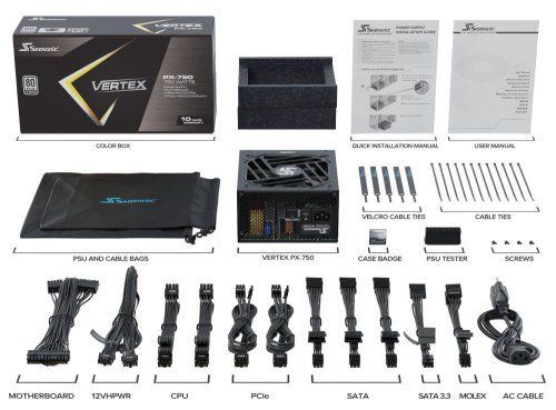 Seasonic VERTEX PX v platinovej úrovni účinnosti, so všetkými najlepšími funkciami, ktoré môžete od napájacieho zdroja Seasonic očakávať: