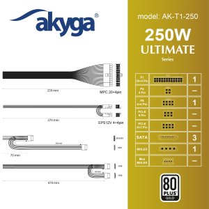 Napájecí zdroj Akyga® AK-T1-250 TFX 250W je pokročilý, kompaktní napájecí adaptér určený pro mini a mediální PC systémy. Podporuje všechny nejnovější stavební normy a zajišťuje vysoký výkon a stabilitu.