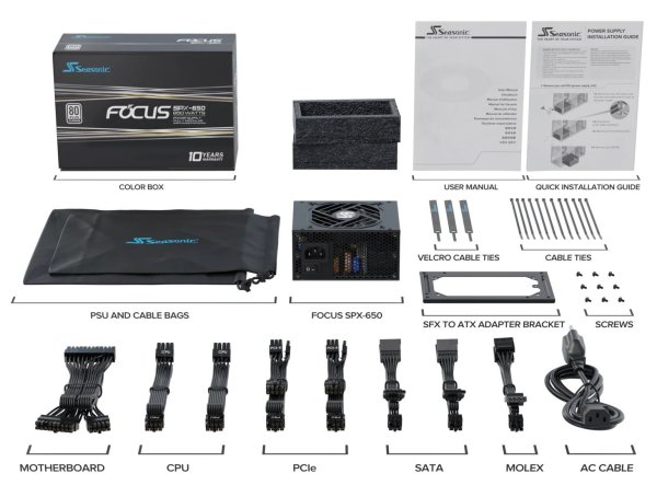 Napájecí zdroj Seasonic FOCUS SPX-650 650 W představuje ideální volbu pro menší PC skříně, ale přesto dokáže vyvinout výkon jako jeho větší bratříček. Disponuje výkonem 650 W, který je vhodný pro herní PC střední třídy, pracovní, domácí a multimediální systémy. Utáhne standardní grafické úlohy, streamovací a multimediální procesy.