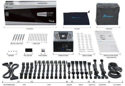 Napájecí zdroj Seasonic Prime PX-1600 Platinum, který utáhne pořádně našlapaný počítač s hladovými komponenty. Nezalekne se špičkových komponent a s přehledem zvládne herní maraton nebo náročnou práci klidně i přes celý víkend. Disponuje výkonem 1600 W, který je ideální pro pokročilé sestavy s moderními grafickými kartami, CPU, které si užívají přetaktování a všechny náročné procesy i multitasking bez kompromisů.