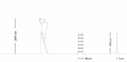 Výška žebříku: 1,65 m Pracovní výška: 2.69 m Šířka: 0,40 m Max.nosnost: 150 kg Materiál: hliník/plast Hmotnost: 2,3 kg Přepravní rozměry: 165x40x5 cm norma: EN 131