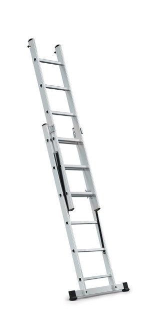 výška žebříku jedna základna: 2,7 m výška žebříku dvě základny: 1,64 m pracovní výška jedna základna: 3,7 m pracovní výška dvě základny: 2,95 m šířka: 0,70 m (základny) přepravní rozměr: 164x45x10 cm max.nosnost: 150 kg materiál: hliník/plast hmotnost: 5,5 kg norma EN 131