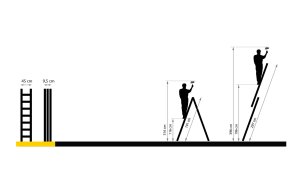 výška žebříku jedna základna: 2,97 m výška žebříku dvě základny: 1,91 m pracovní výška jedna základna: 3,96 m pracovní výška dvě základny: 3,16 m šířka: 0,70 m (základny) přepravní rozměr: 191x45x10 cm max.nosnost: 150 kg materiál: hliník/plast hmotnost: 6,0 kg norma EN 131