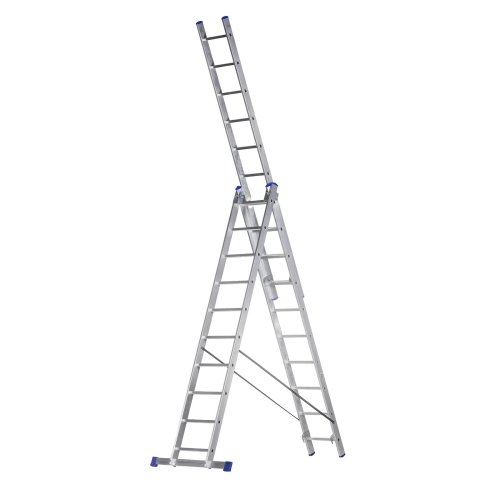Žebřík Al, univerzální, 3dílný, 10 příček, 2,69 / 5,81 m, VHR H 3x10, nosnost 150 kg, ELKOP.