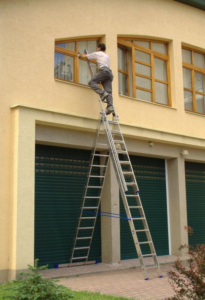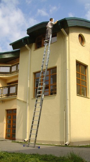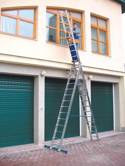 Trojdílný opěrný žebřík ELKOP je potřebný doplněk pro práci ve výškách doma i na zahradě, bez něhož se neobejde žádný kutil.