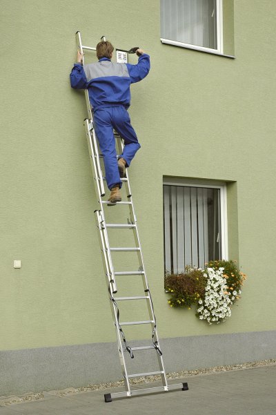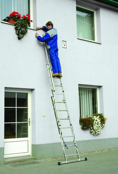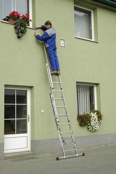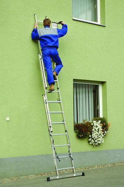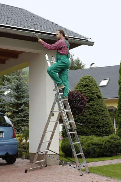 Trojdílný opěrný žebřík ELKOP je potřebný doplněk pro práci ve výškách doma i na zahradě, bez něhož se neobejde žádný kutil.