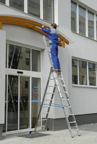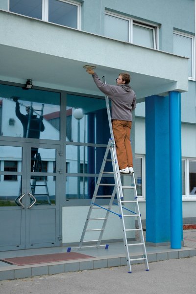 Trojdílný opěrný žebřík ELKOP je potřebný doplněk pro práci ve výškách doma i na zahradě, bez něhož se neobejde žádný kutil.