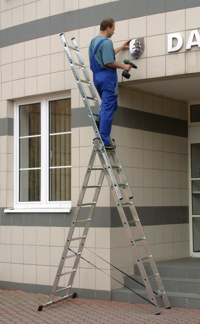 Trojdílný opěrný žebřík ELKOP je potřebný doplněk pro práci ve výškách doma i na zahradě, bez něhož se neobejde žádný kutil.