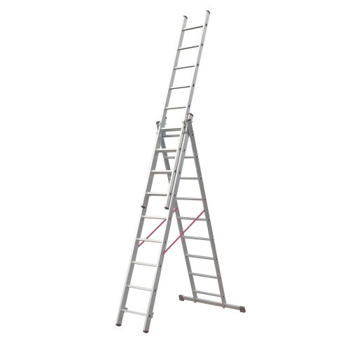 Žebřík Al, univerzální, 3dílný, 9 příček, 2,43 / 5,29 m, VHR T 3x9, nosnost 150 kg, ELKOP.