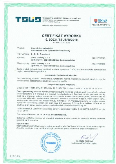 žebřík je vyroben z pevného dřeva, které zajišťuje dostatečnou nosnost a stabilitu