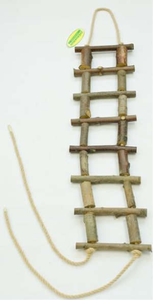 Provazový žebřík s příčkami z větví z tvrdšího dřeva. Použitím v ubikaci zajistíte zvířátku aktivní pohyb spojený se zábavou. Vhodný pro myšky, osmáky, potkany a činčily. Délka: 50 cm