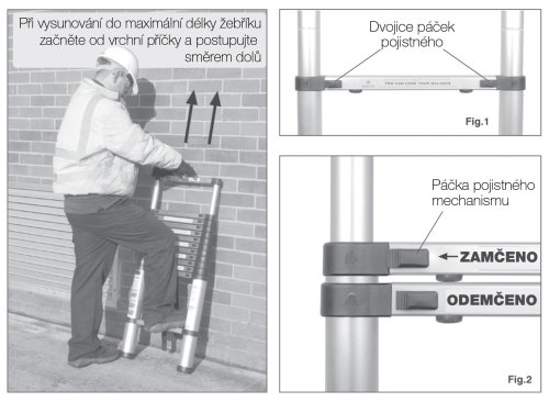 • systém vysouvání spolu s aretací délky umožňuje libovolné nastavení délky žebříku
