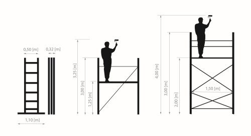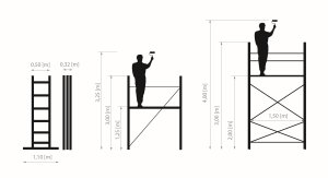 Lešení - multifunkční s širokým spektrem použití. Jednotlivé prvky lešení lze využít jako samostatně stojící dvouprvkový žebřík, naklápěcí žebřík a pracovní plošinu. Skvěle poslouží při každodenní práci profesionálů, ale najde široké uplatnění i při různých domácích pracích.