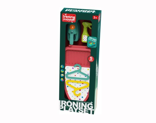 Sada na žehlení, součástí sady je žehlící prkno, žehlička, 2 ramínka, rozstřikovač. Výrobek vyžaduje 3× AG13 baterie- které jsou součástí balení. Sada je vhodná pro děti od 3 let.