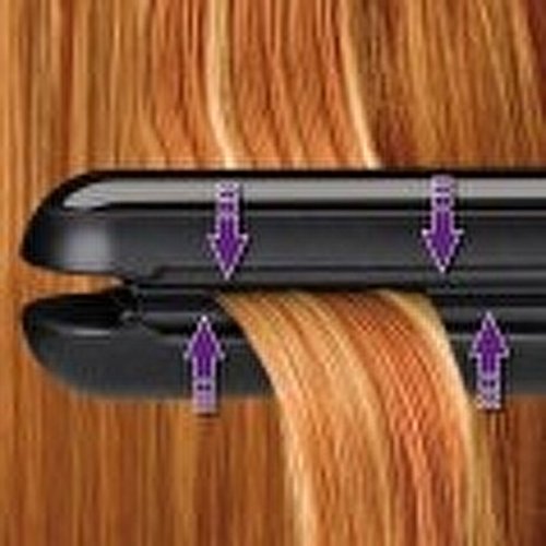 Vlasová žehlička se systémem Active Plates Technology s aktivními žehlícími plochami, které se dokonale přizpůsobí vlasům a zajistí maximální účinek jediným tahem žehličky. Plochy z nanokeramiky chrání strukturu vlasu před poškozením.