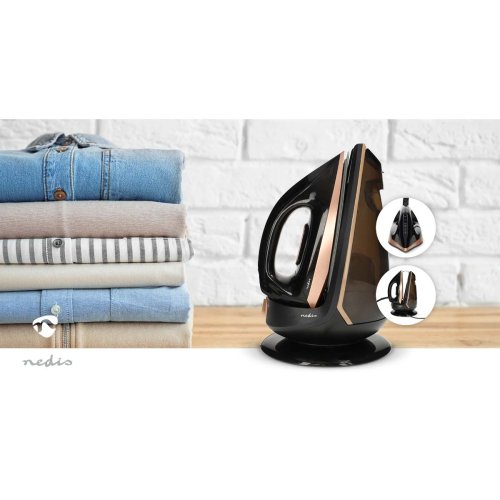 Parní generátor Nedis se zahřeje během 20 sekund, žehlení tedy začíná okamžitě. Kontinuální výstup páry 30–40 g/min a tlak 5–7 barů umožňují efektivně vyhlazovat i odolné záhyby. Keramická plocha zajišťuje rovnoměrné rozložení tepla a dlouhou životnost.