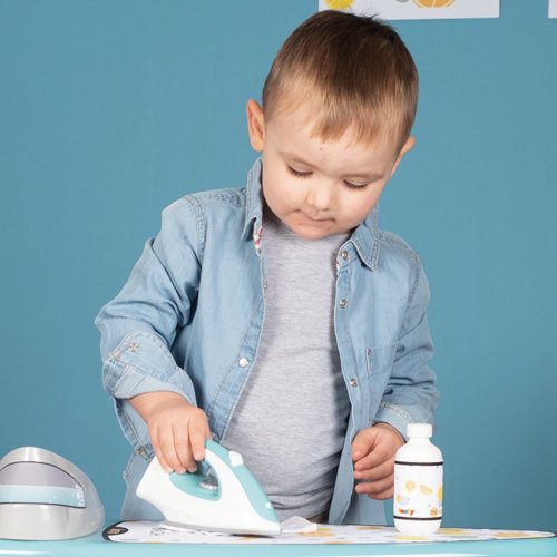 Realistická Smoby žehlička s mechanickým knoflíkem se zvukem "kick-crack". Rozměry produktu (DxŠxV): 17,7 x 7,4 x 8,8 cm.