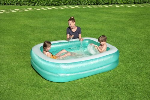 ZELENÝ ČTYŘHRANNÝ RODINNÝ BAZÉN. Dva trojfázové propojovací ventily. Pevný a předem otestovaný vinyl. 2 stejné prstence. Velmi silné postranní stěny. Přiložena vysoce odolná záplata. Navržený objem vody: 450 litrů (119 gal.) Voda se z bazénu vypouští snadno použitelným ventilem! Obsah: Jeden bazén, záplata pro vysoké zatížení. Rozměr:200x146x48cm. Věk: 3+