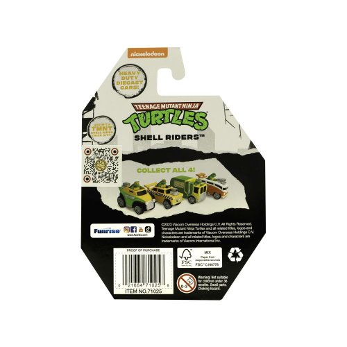 Kovová auta v měřítku 1:64 s oblíbenou postavou želvy Ninja za volantem. Vyrobeno z kvalitního materiálu. Nasbírejte všechny 4 postavy - Leonardo, Michelangelo, Donatello a Raphaelo! Vhodné pro děti od 4 let.